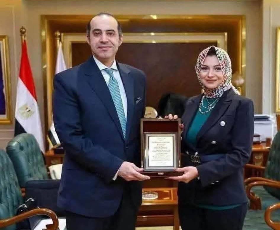 بينما فوجئنا بتكريمها من قبل وزارة الشؤون النيابية والقانونية والتواصل السياسي، وظهورها مع المستشار الوزير محمد فوزي.، حيث أثارت الصورة المنشورة لها مع الوزير غضب عارم بين رواد مواقع التواصل الاجتماعي والتي جاءت كالآتي: