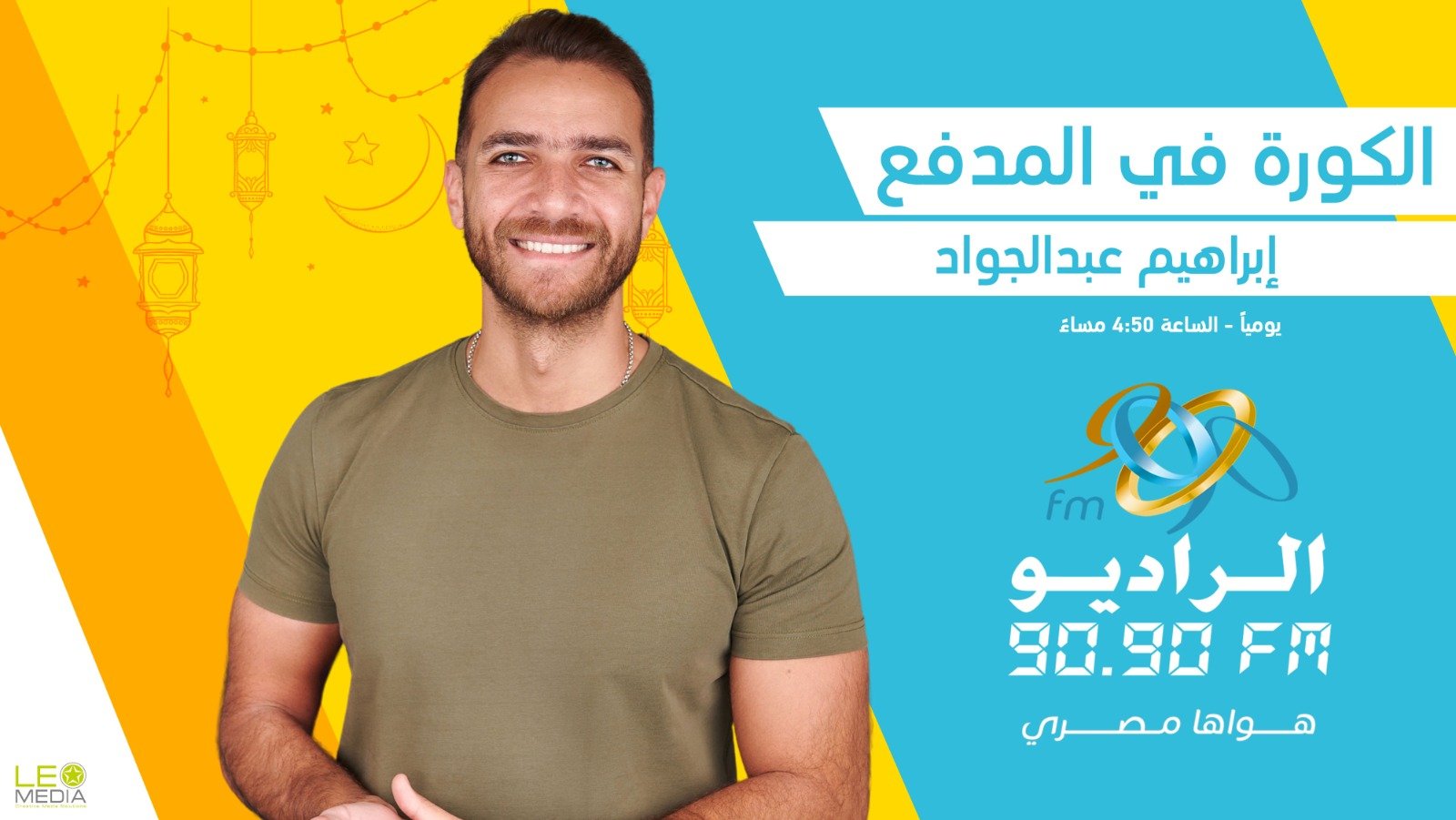 “الكورة في المدفع” للإعلامي إبراهيم عبدالجواد، الساعة 4:50 عصرا، ويعاد في 8:30 مساء.