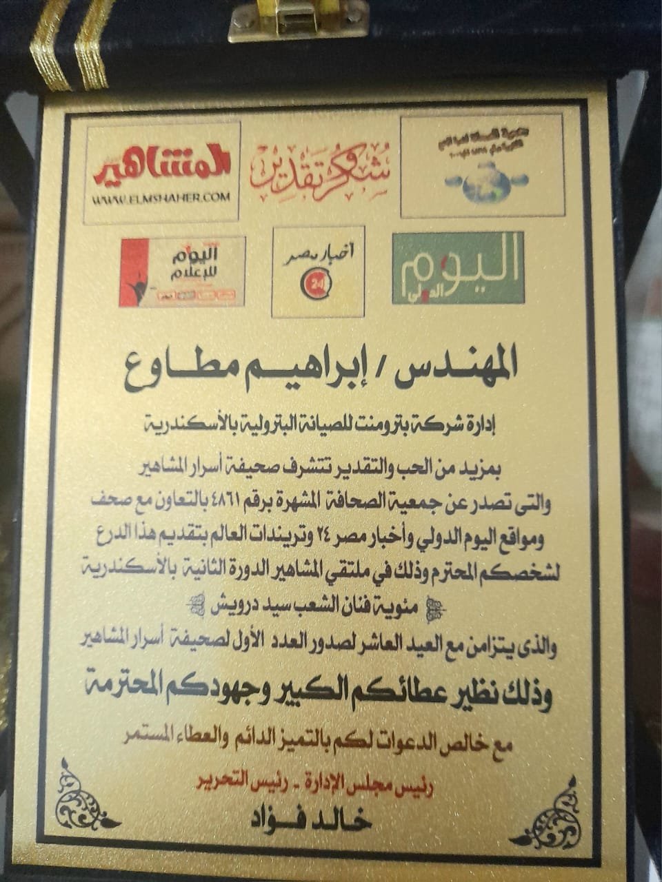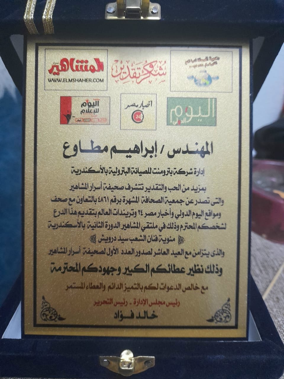 المهندس الكبير إبراهيم مطاوع رئيس مجلس إدارة شركة بترومنت للصيانة البترولية بالأسكندرية .