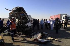 وكانت الأجهزة الأمنية بالمنيا، برئاسة اللواء حاتم حسن، مدير أمن المنيا، قد تلقت بلاغا من شرطة تأمين الطرق، بانقلاب أتوبيس شمال بوابة الرسوم بطريق الصعيد الصحراوي الشرقى.