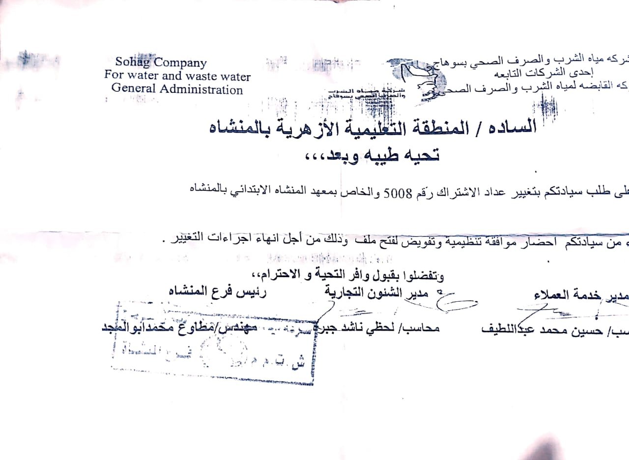 والسؤال هنا لماذا وافقت أدارة المعهد والإدارة الازهرية بالمنشاه والمنطقه الأزهرية علي كتابة أسم المتبرع بعملية التجديد قبل مخاطبة لجنة المسميات والحصول علي موافقتها وكيف لمعهد يحمل أسم بينما يتعامل رسميا مع كافة الجهات بأسم أخر .