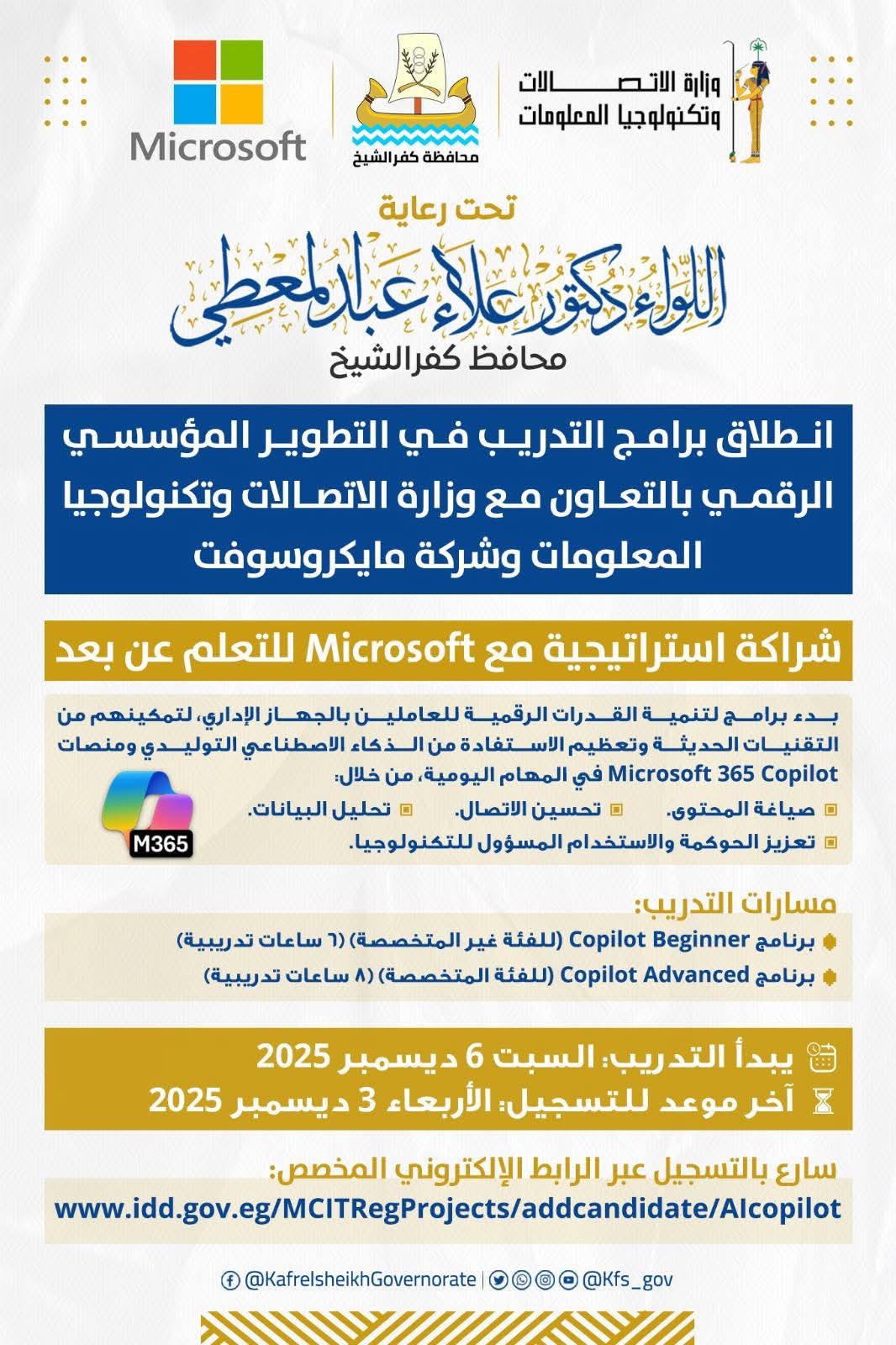 كفر الشيخ: تدريب العاملين على أدوات الذكاء الاصطناعي بالشراكة مع “مايكروسوفت”