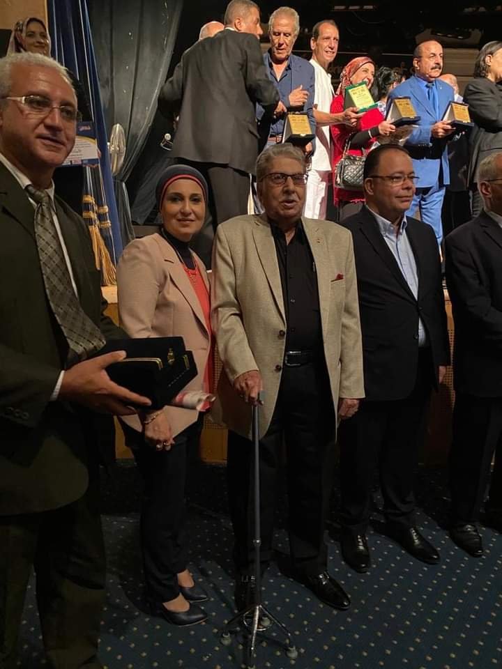 والدكتور حسن البحر درويش حفيد فنان الشعب سيد درويش الذى فاجأ الجميع بالحضور من القاهرة خصيصا رغم كبر سنة وثقل حركته للتكريم والمشاركة .