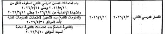 وفي بيان لها أكدت وزارة التعليم و التعليم الفني، انطلاق بداية الترم الثاني 2026 في جميع المدارس، علي أن يبدأ من 7 فبراير 2026 حتى 11 يونيو 2026