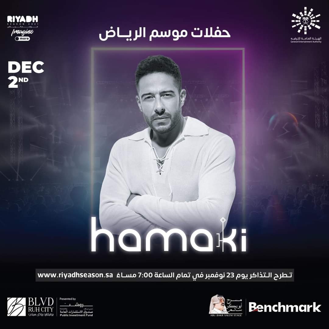 من المقرر أن يقدم الفنان المصري محمد حماقي مجموعة من أبرز وأشهر أعماله الغنائية، في حين أن هذا الحفل يدخل ضمن الفعاليات التي تنظمها الهيئة العامة للترفية، داخل المملكة العربية السعودية.