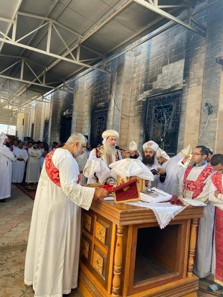 الأنبا فام يتراس صلاة القداس في كنيسة الأنبا بيشوي المنكوبة
